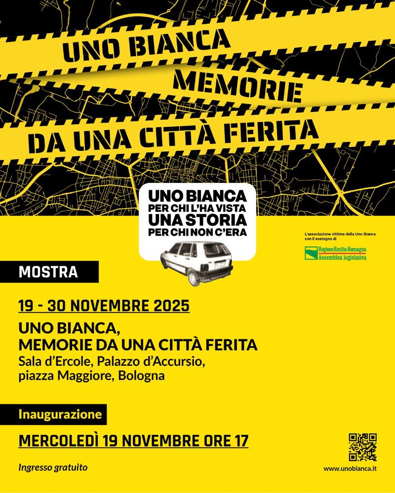 The exhibition Uno Bianca. Memories from a Wounded City opens on 19 November at 5:00 p.m. - in the Sala d’Ercole at Palazzo d’Accursio - and will remain open to visitors until the end of the month. It is an exhibition itinerary that reconstructs the history of the Uno Bianca Gang through an organic map of testimonies, documents, and memories from civil society. The exhibition offers an in-depth look at one of the most dramatic periods for Bologna and the Emilia-Romagna region, recounting events, historical context, and social impact.